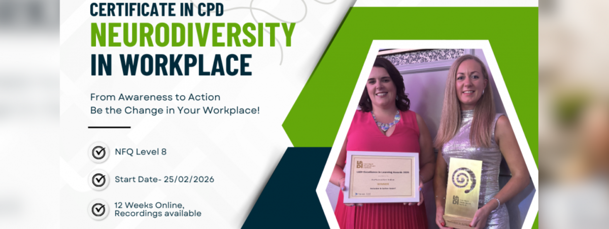 The Certificate in CPD: Neurodiversity in the Workplace is a Level 8, 12-week, part-time online programme designed for leaders, HR professionals, and teams. More than theory, it delivers practical strategies to implement inclusive policies, understand neurodivergent conditions, and foster cultures where everyone can succeed.